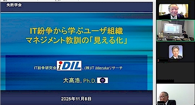 内容: デジタル化に伴うIT開発がとん挫,その損害賠償を求めて当事者で争われ,ITユーザに賠償命令が下される事件が繰り返されている.まず一審の判決が控訴され最終審では逆転判決でITユーザ敗訴となった3件の事件について事実関係を失敗学会でレビューする.その結果を現象面に加え,原因面での事実関係も明らかにすることで,問題の真因を特定することで紛争の再発防止に繋がる教訓を見える化し、この教訓を活かすことによる社会的効果について議論した上,我が国のようにシステム開発をITベンダにアウトソースする他国にも広く適用する方策についても議論したい.